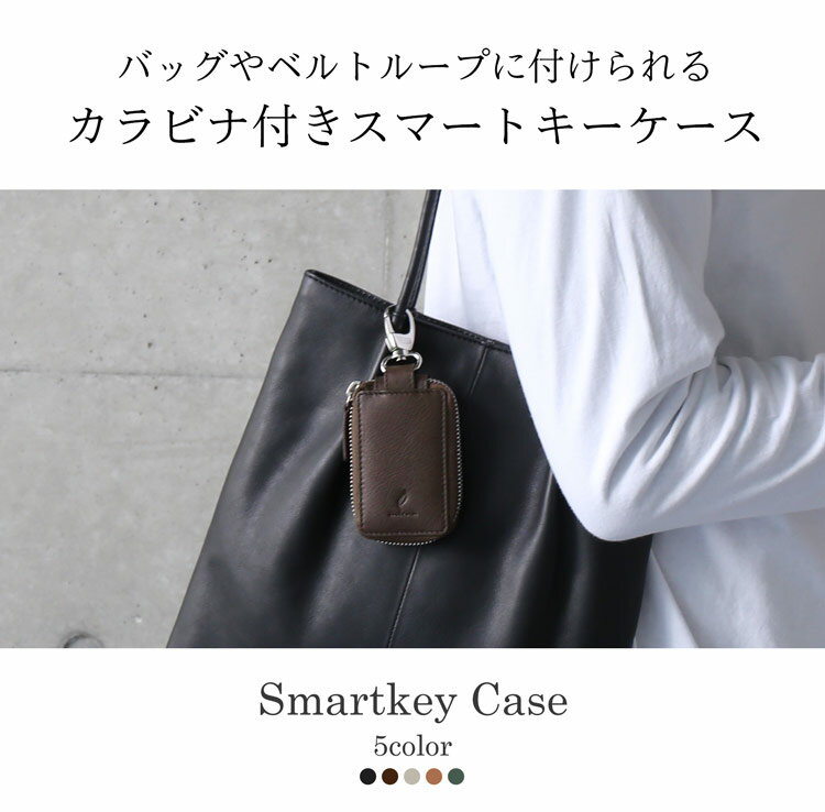 バッグやベルトループに付けられるカラビナ付きスマートキーケース。