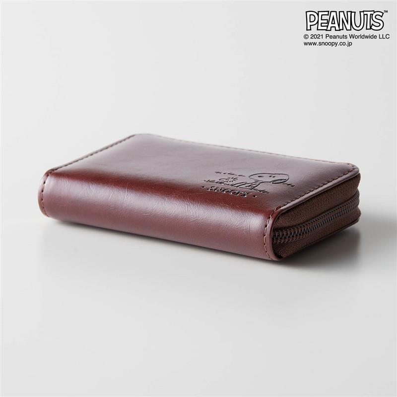 チョコ ●蛇腹式で大きく開いてカード11枚をまとめて収納できるカードケース ●スヌーピーとウッドストックを型押した大人も使いやすいデザイン●アンティーク感のある合成皮革素材 ●開閉:ファスナー●カードケース11室●約12×7.5×2cm●素材/合成皮革●中国製
