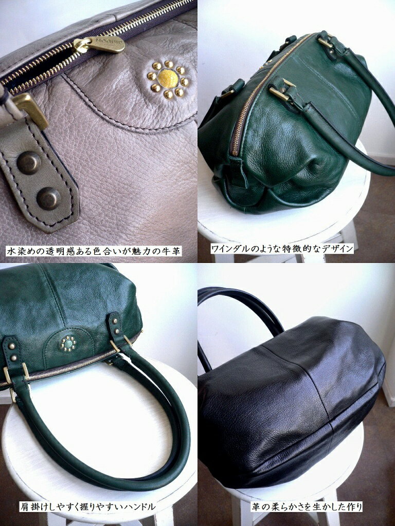 レザークリームプレゼント moquip モキップ ガルーシャ ドロップ バレルバッグ ボストン トートバッグ BGGD06178 ベージュ/グリーン/ブラック