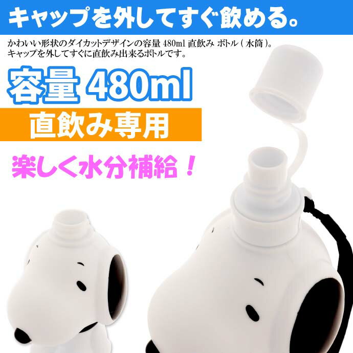 ピーナッツ スヌーピー 直飲みプラボトル 水筒 480ml SKATER(スケーター)キャラクターグッズ 入園 入学 グッズ 用品 給食セット 4973307386848 PBSD5 スヌーピー の形状のダイカットデザインの容量480ml直飲み ボトル(水筒)。