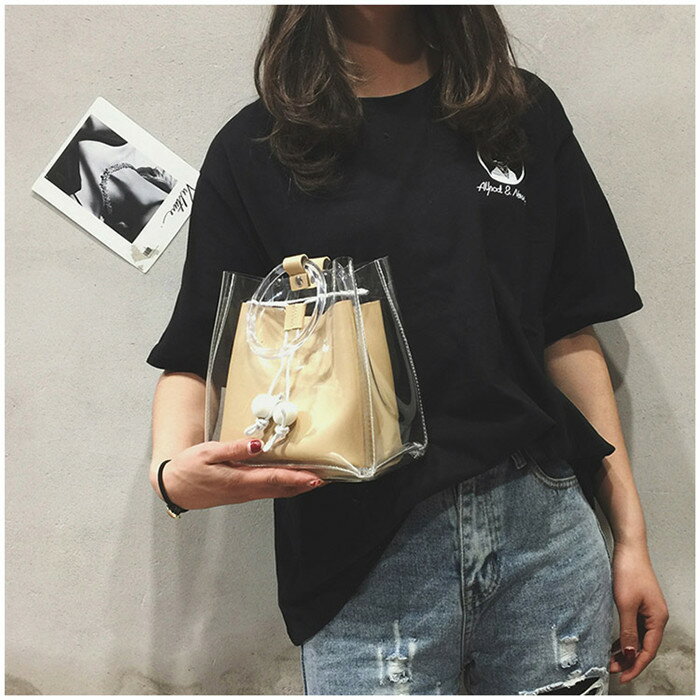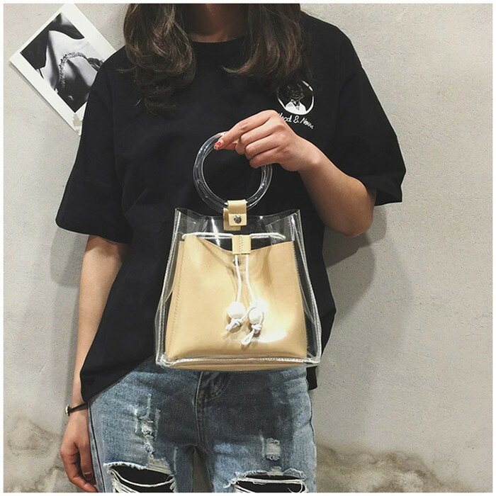 韓国ファッション 女性 ゼリーバッグ リング 小さい 携帯用 バケツバッグ(T)