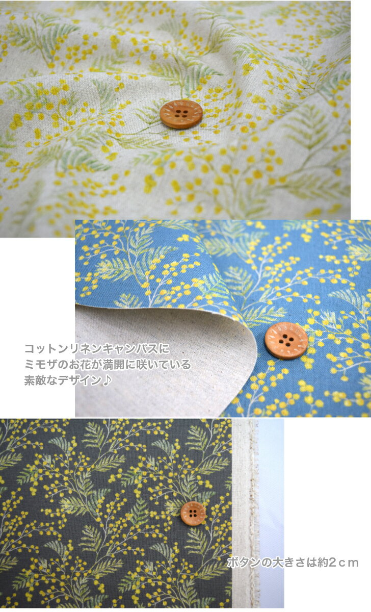 【コットンリネンキャンバス】【デジタルプリント】「ミモザの気持ち」 コットン80% リネン20% 綿麻 布 入園入学 服 手作り 花柄 黄色 カバーリング 小花 ミモザ tsukushi♪