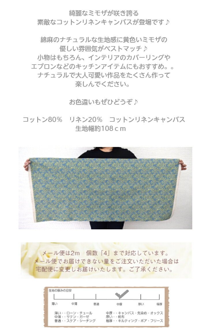 商品情報素材コットン80%リネン20%コットンリネンキャンバス その他商品説明*生地幅約108cm*200センチまでメール便対応です。