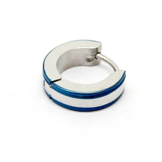 メタリックブルーツインストライプ 平打ちステンレスフープピアス(鏡面仕上げ4.2mm幅) (片耳メンズピアス/メンズアクセサリー)