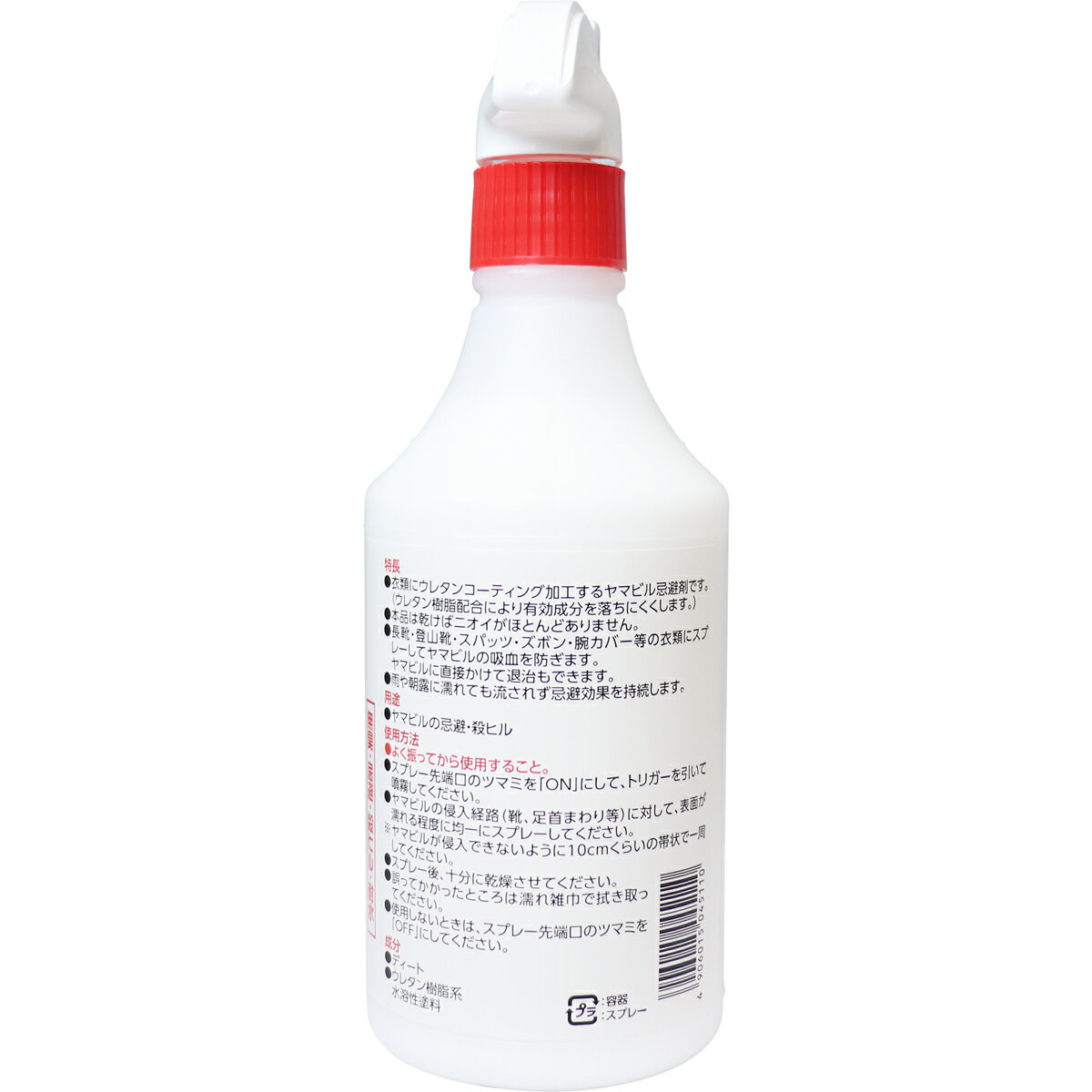 衣類にスプレーし、ヤマビルの吸血を防ぐ!●ウレタン樹脂配合により有効成分を落ちにくくします。