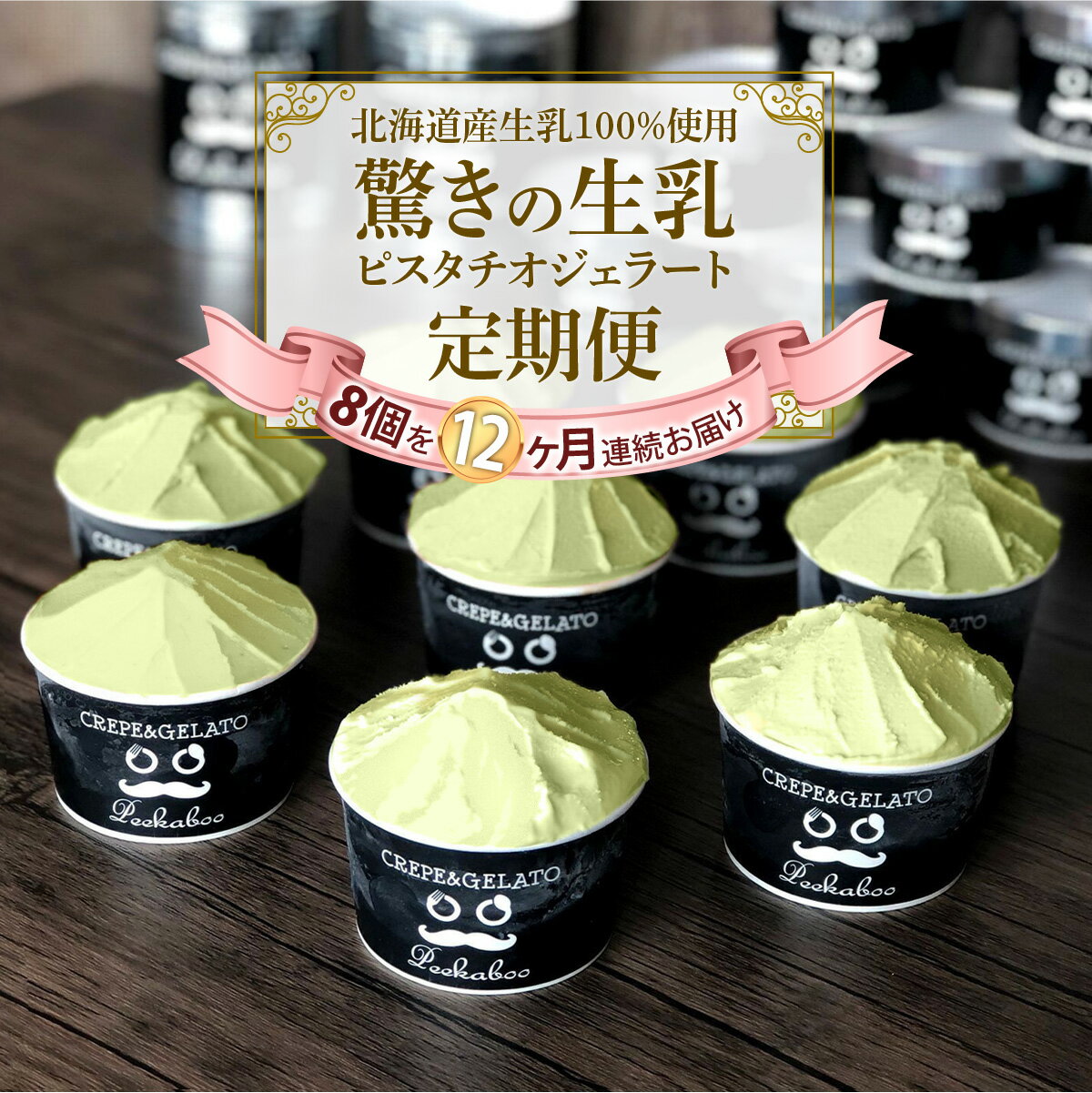 【ふるさと納税】 <12ヶ月定期便> アイス ジェラート 毎月 8個 ピスタチオ 毎月 8個 北海道産 生乳 ジェラートセット スイーツ カップアイス カップ 冷凍 北海道 新ひだか町