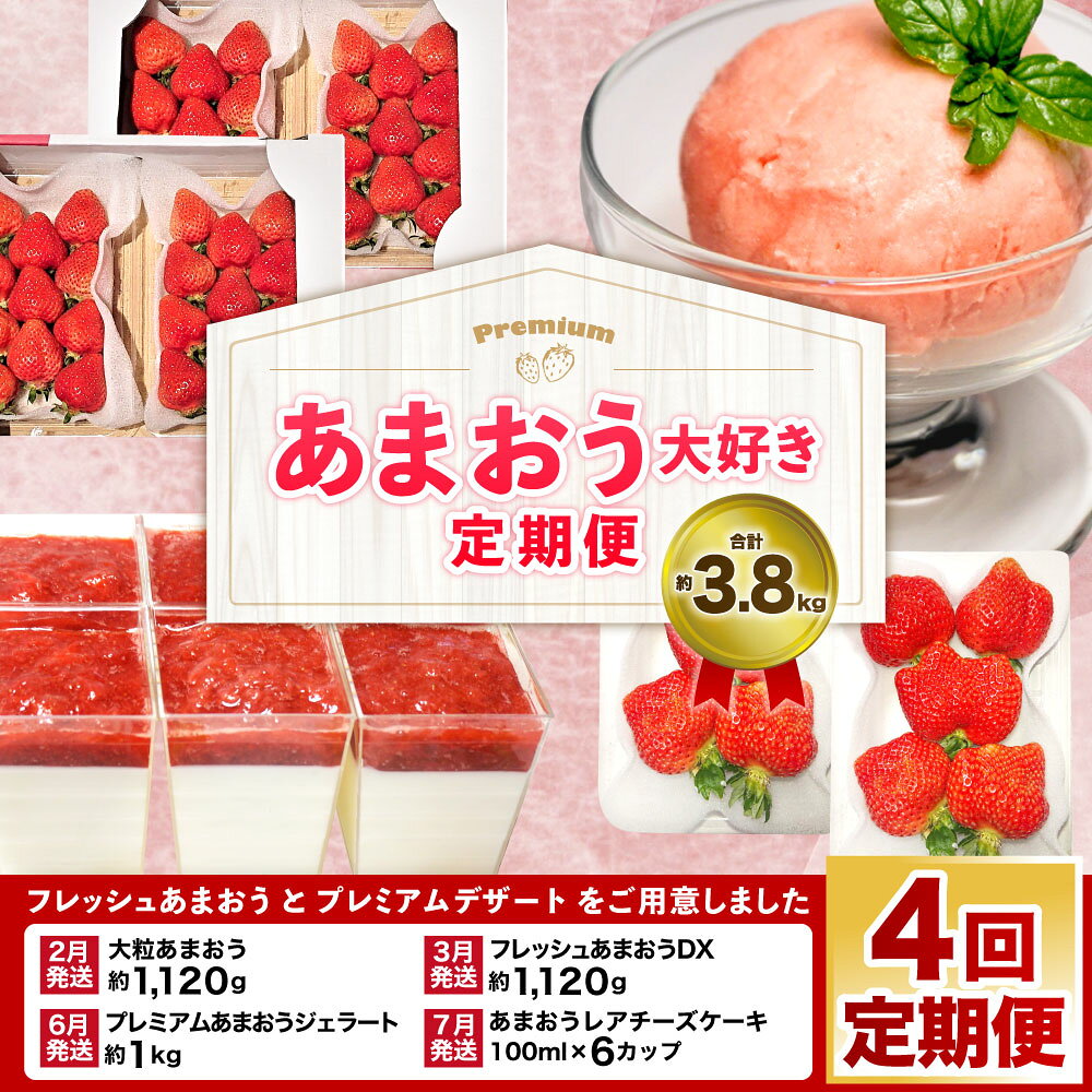 【ふるさと納税】【予約受付・4回定期便】 あまおう大好き定期便 合計4種 大粒あまおう フレッシュあまおうDX プレミアムあまおうジェラート2種 プレミアムあまおうレアチーズケーキ 定期便 あまおう いちご イチゴ 苺 冷凍 アイス ケーキ スイーツ セット 詰め合せ 送料無料